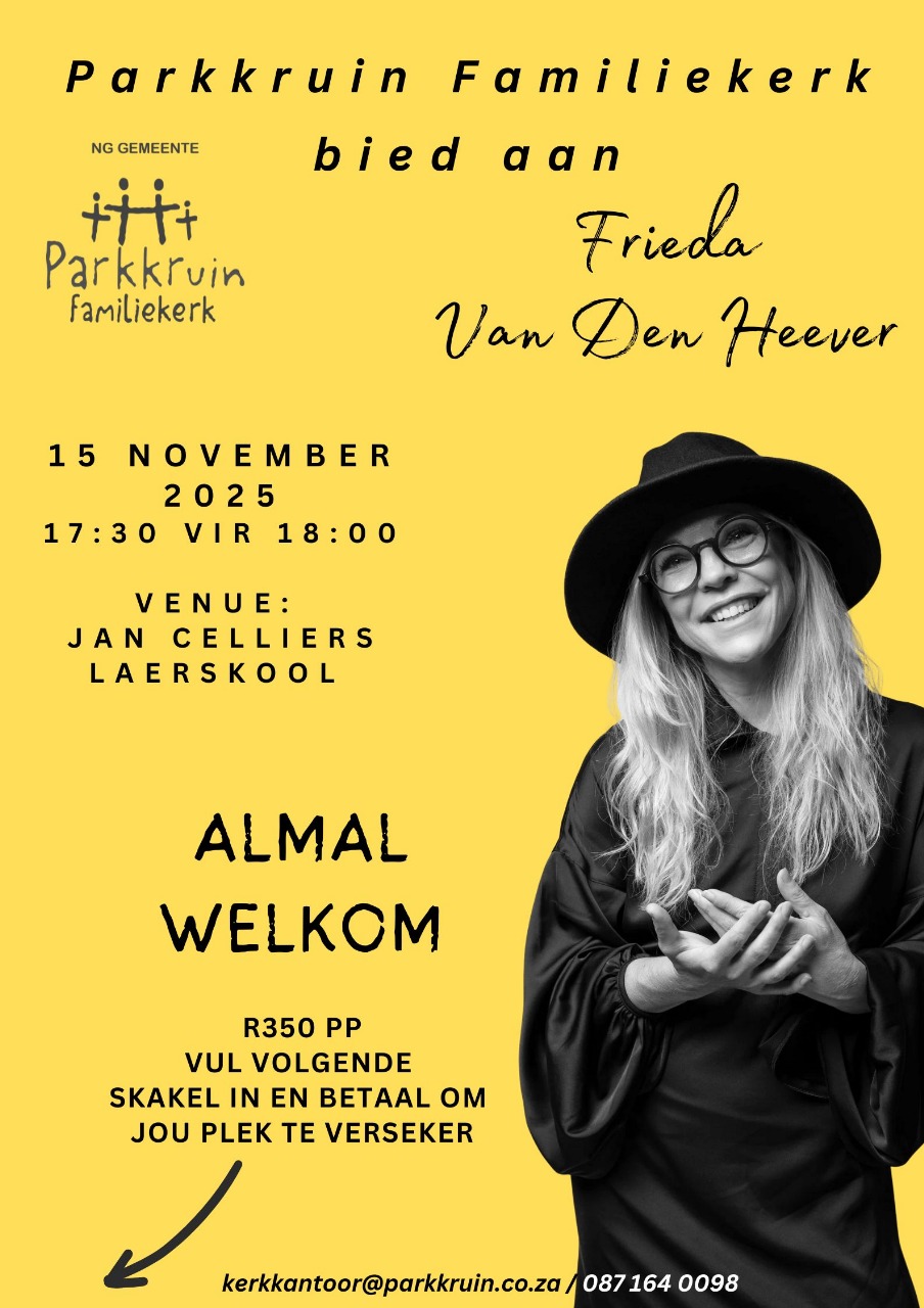 Elke Donderdag stuur ons ‘n digitale nuusbrief uit met al die nuutste gebeure in die gemeente. Indien jy graag die nuusbrief wil ontvang, registreer asseblief met jou epos adres.